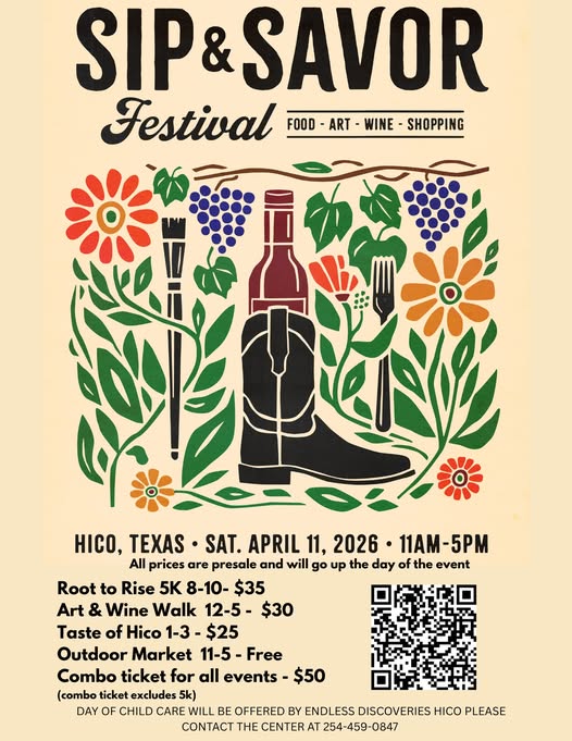 Join us on Saturday, April 11, 2026 at 11am in Historic Hico, Texas for an unforgettable experience that showcases the best of what our community has to offer throughout the day.